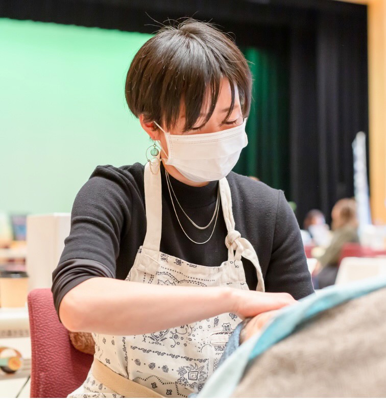 フェイシャルエステで使用するモコモコの泡で、ハンドマッサージ・フットマッサージ・フェイシャルエステを体験していただきます。