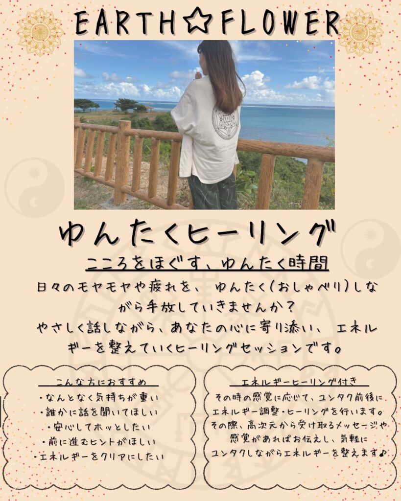 ゆんたくヒーリングは、おしゃべりをしながら心をほぐし、やさしくエネルギーを整える癒しの時間です。