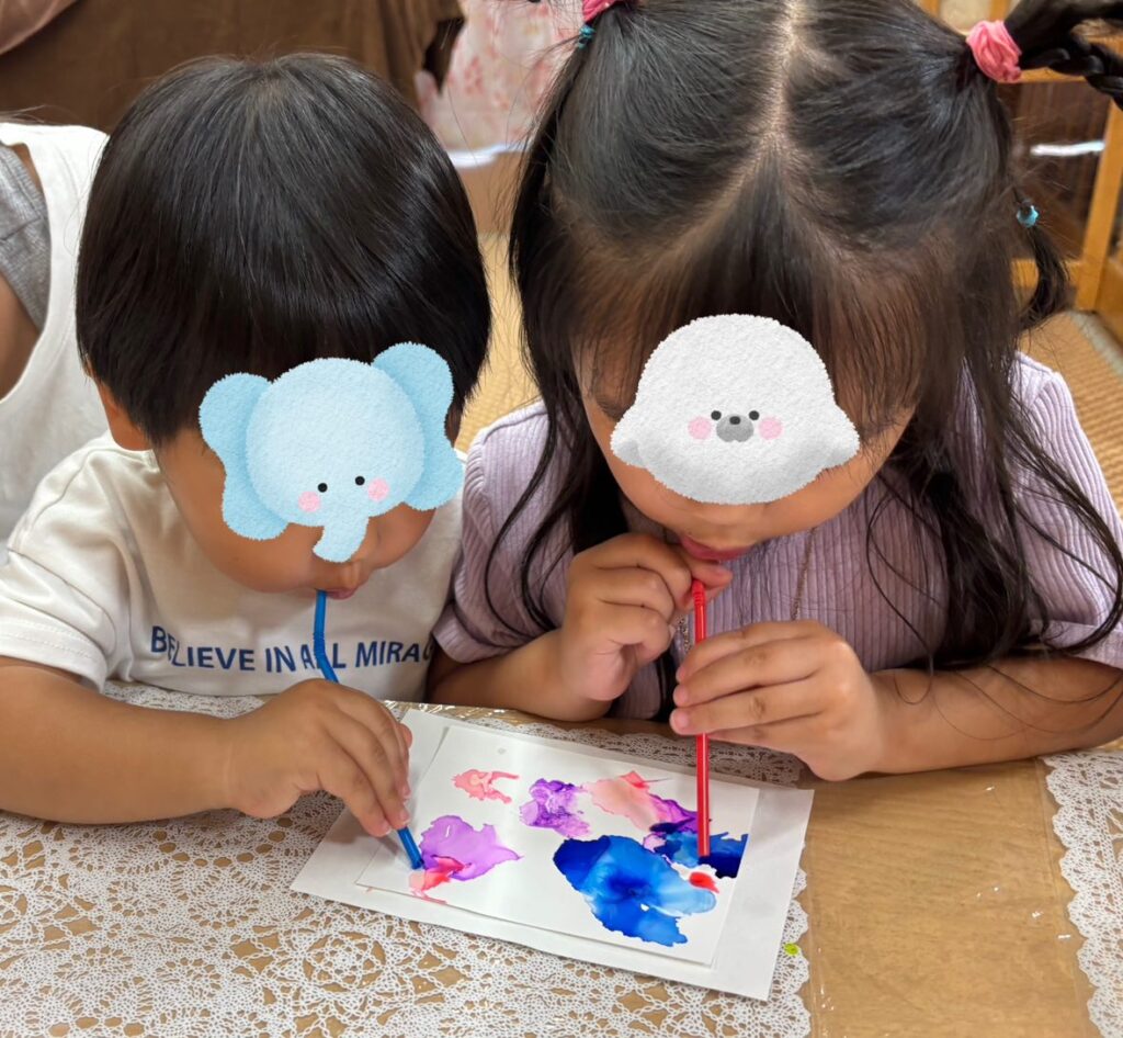 ストローで息を吹き