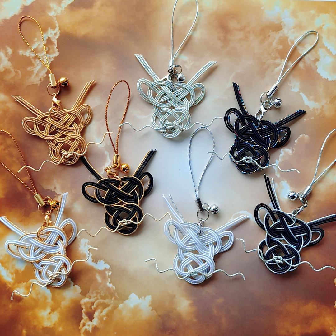 水引(魔除けの意味や人と人を結びつける意味があり、縁起が良いとされています)を用いた、御朱印帳バンド・ストラップ・キーホルダー・ご祝儀袋等