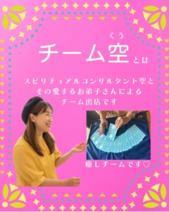 【チーム空】は、スピリチュアルコンサルタント「空」と、その愛するお弟子さんたちによるチーム出店です。