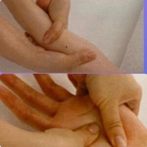 天然の粘土を使って肘から指先まで優しくマッサージします。