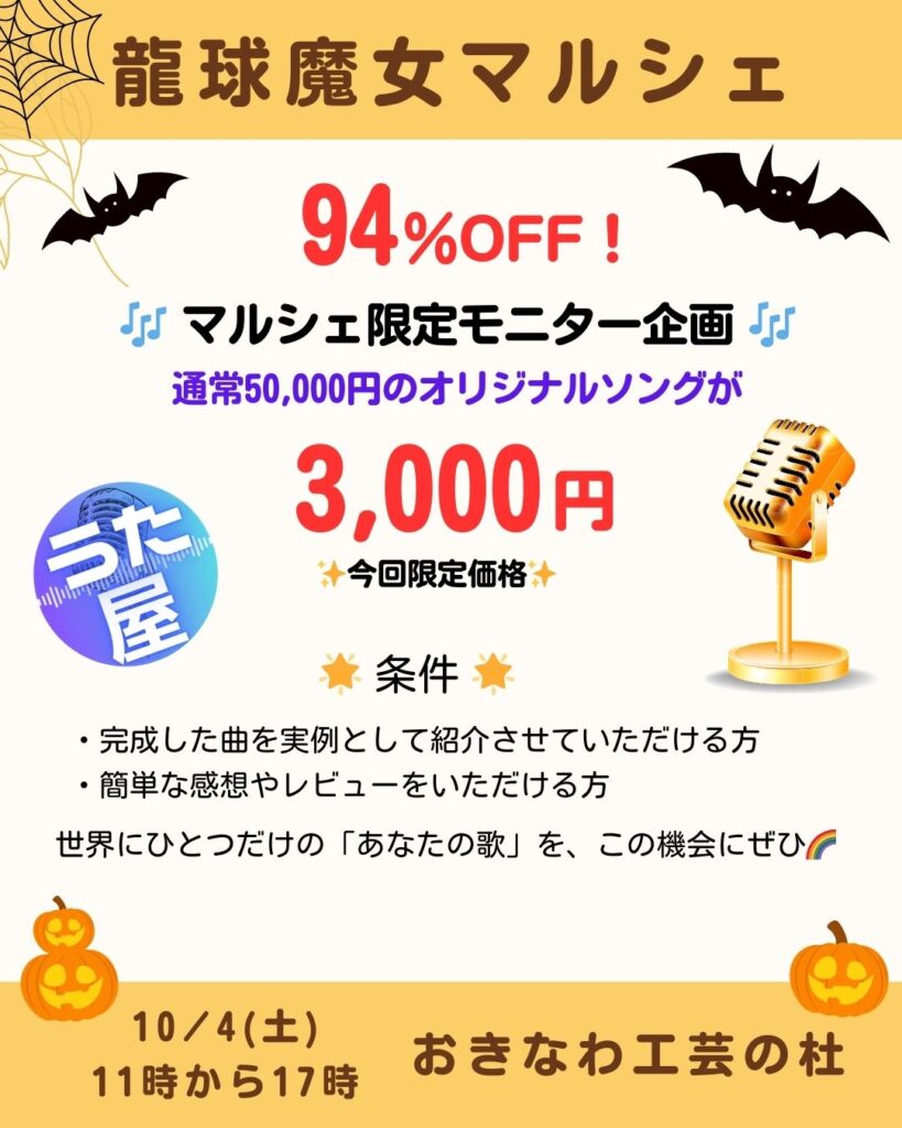 マルシェ限定モニター企画として、通常5万円のオリジナルソングを